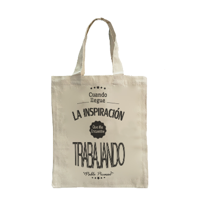 Bolsa de algodón 100% reciclable con estampado personalizado, que puede ser este, o el que tú escogas. Disponible en 35x45, 42x38 y 41x37 cms.