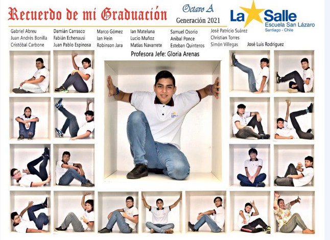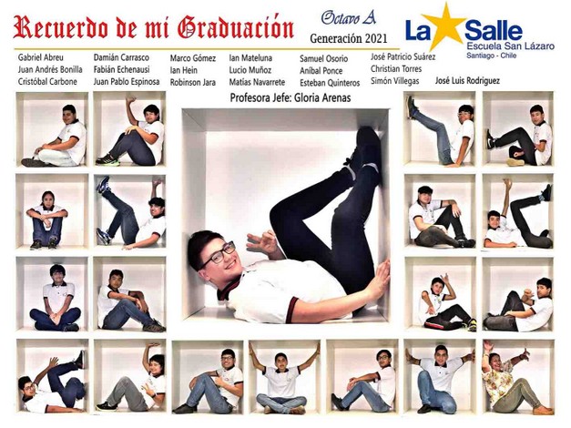 Para kinder, Octavos Básico y Cuartos Medio, con fotógrafo profesional en la toma de fotos del curso, y la creación de un cuadro inolvidable, como el cuadro cubo para modo pandemia, o con fotos grupales. Puedes usar nuestras plantillas de cuadro graduación, o desde un diseño nuevo.